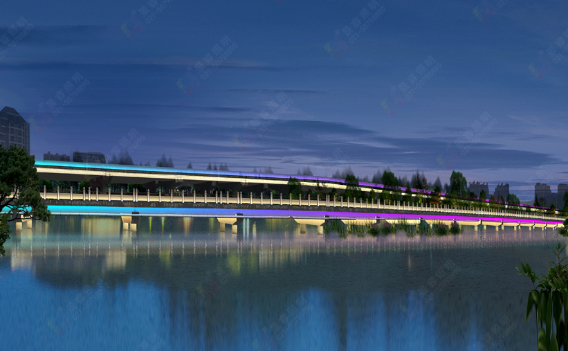 瓯海大道南辅道桥灯光和主线瓯海大道灯光基调保持一致又有变化。桥护栏使用3000K色温12W洗墙灯照射,桥护栏立柱采用3000K小功率LED投光灯照射;桥侧面采用彩色动态洗墙灯;桥墩两侧使用3000K色温18W洗墙灯照射。夜晚,大桥犹如一条巨龙横跨湿地公园静寂的湖面,美不胜收。